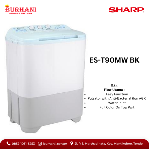 ES-T90MW-BK/SHARP Mesin Cuci 2 Tabung 9 KG - Biru - ES-T90MW-BK