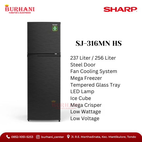 SJ-316MN-HS SHARP Kulkas 2 Pintu - SJ-316MN-HS