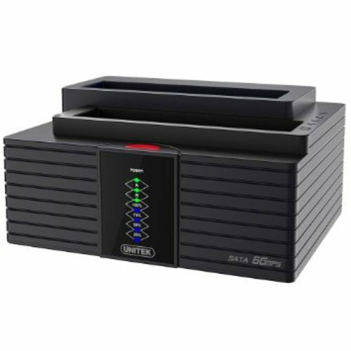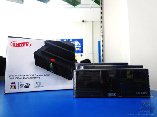 The dual bay docking station connects to the computer via USB3.0 | |
