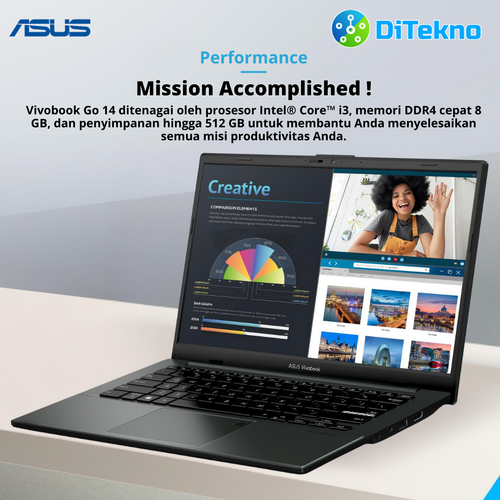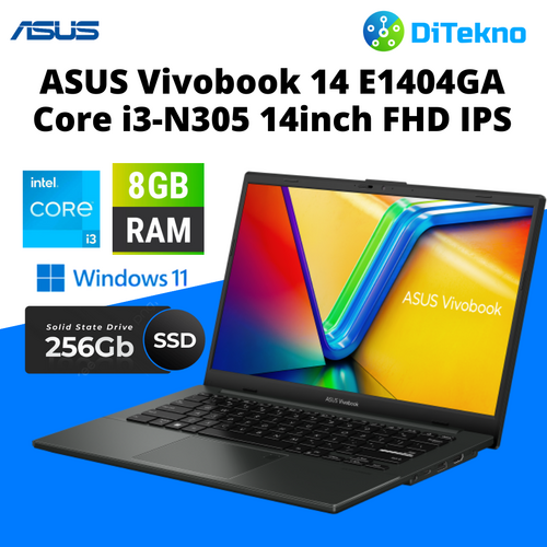 ASUS Vivobook Go 14 E1404GA-FHD321 - Mixed Black [Intel Core i3-N305 / Intel UHD Graphics / 8GB / 256GB / 14inch / WIN11 / OHS]