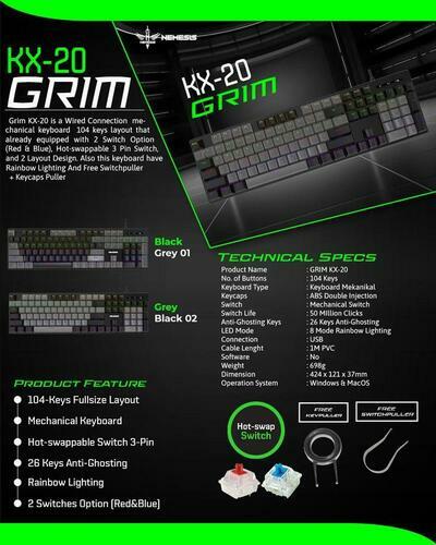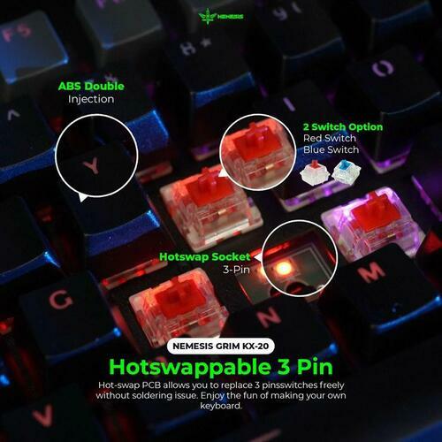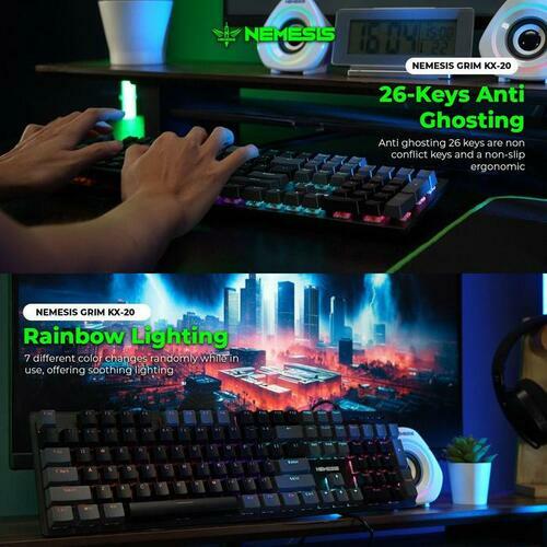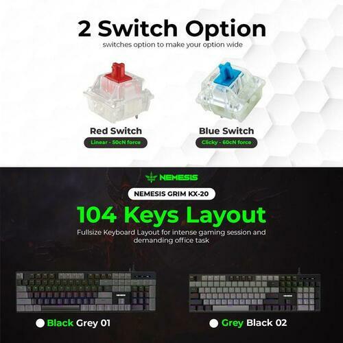 NYK Nemesis KX-20 GRIM Black Grey 01 Switch Blue Gaming Keyboard Mechanical Wired