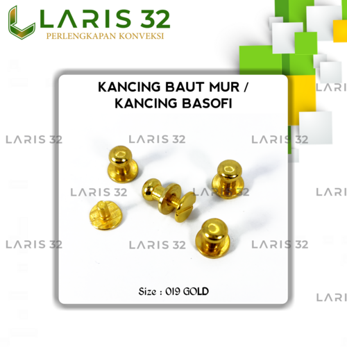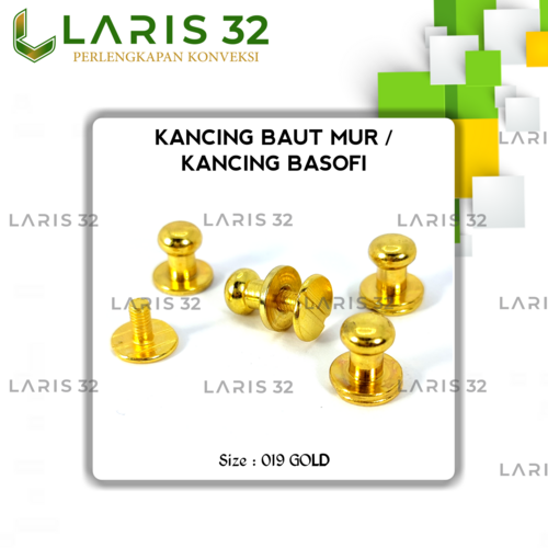 Kancing Baut Mur 019 adalah mur pentil yang biasa digunakan untuk pengait gelang, dompet, dll