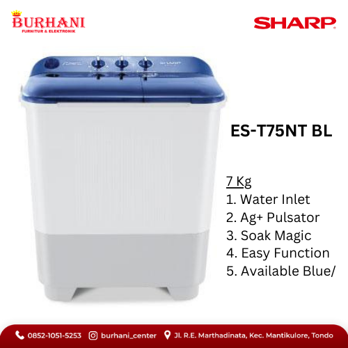 ES-T75NT-BL/SHARP Mesin Cuci 2 Tabung 7 KG - Biru - ES-T75NT/BL