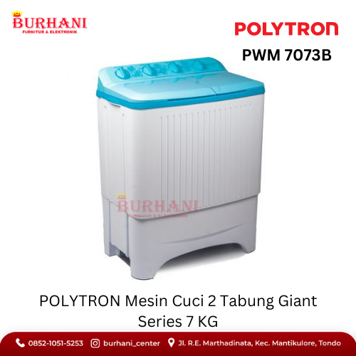 PWM-7073-B POLYTRON Mesin Cuci 2 Tabung 7KG