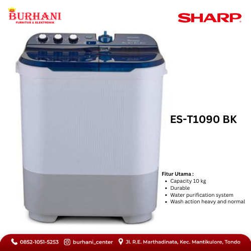 ES-T1090-BK/SHARP Mesin Cuci 2 Tabung 10 KG - ES-T1090-BK