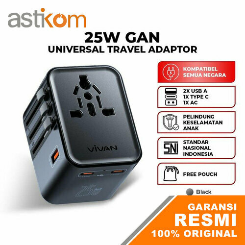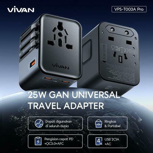 Travel Adapter Charger Vivan VPS-T003A Pro Black 25W 2C+1USB