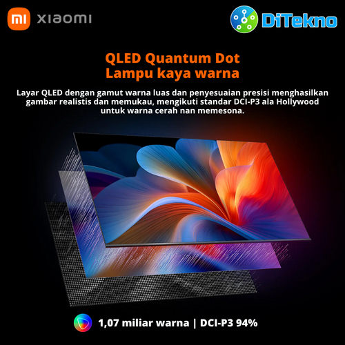 Rasakan pengalaman menonton sekelas bioskop langsung dari ruang tamu Anda dengan Xiaomi TV A Pro 55" 2026. Ditenagai layar QLED 4K ultra-jernih, warna tajam DCI-P3 94%, dan 1,07 miliar warna, TV ini menghadirkan detail mengagumkan dan warna yang hidup.