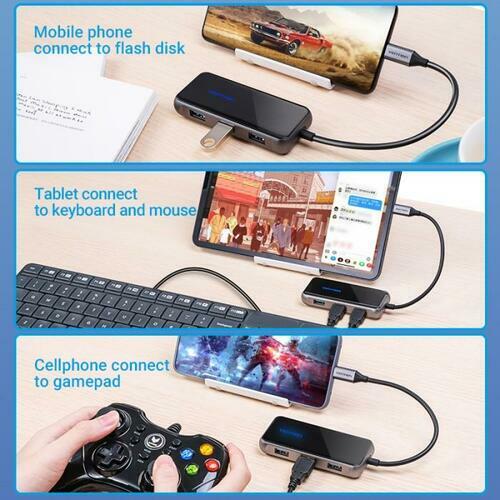 Vention Docking Station USB-C to USB 3.0 x 4/PD 0.15M Gray Mirrored Surface T...