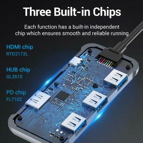 Vention Docking Station USB-C to HDMI/USB 3.0 x 3/PD 0.15M Gray Mirrored Surf...