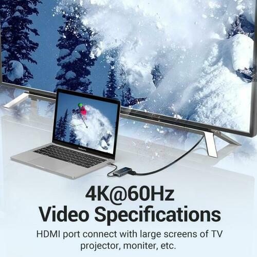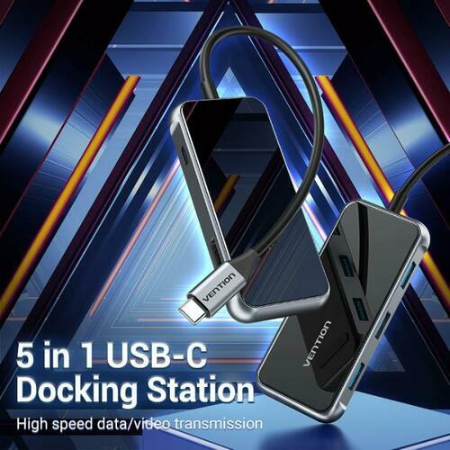 Vention Docking Station USB-C to HDMI/USB 3.0 x 3/PD 0.15M Gray Mirrored Surface Type TFBHB