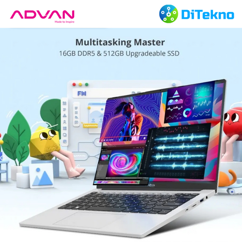 Laptop Advan Workplus memiliki dimensi layar 14 inch FHD 1920*1200 dengan rasio 16:10 dan di dukung teknologi IPS. Membuat layar menjadi tajam dan nyaman di mata Anda.