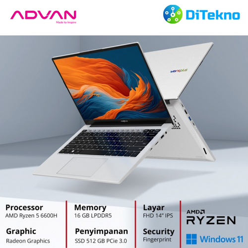 Laptop / notebook Advan Workplus menggunakan processor AMD ryzen 5 6600H ditujukan untuk professional, sangat nyaman digunakan untuk bekerja, programing, content creator, IT, main game, serta mendukung semua kegiatan Anda.
