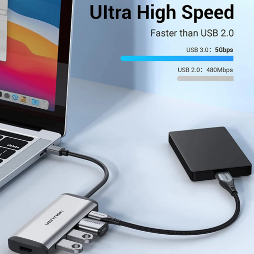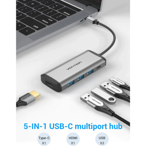 Vention Converter Type C Male Thunderbolt 3.1 to HDMI 4K 30Hz 3x USB 3.0 PD Female 0.15 Meter - CNBHB