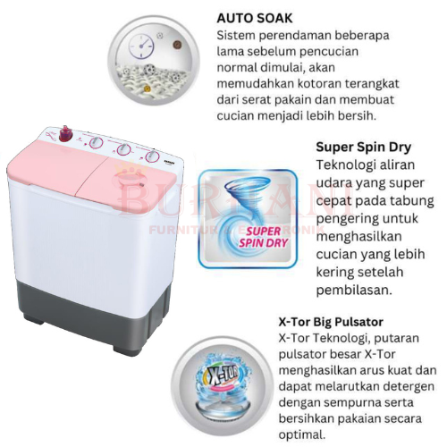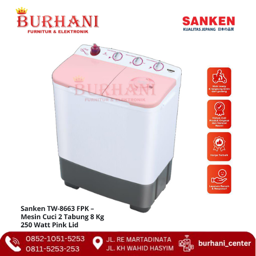 TW-8663FPK SANKEN Mesin Cuci 2 Tabung 8kg - Pink