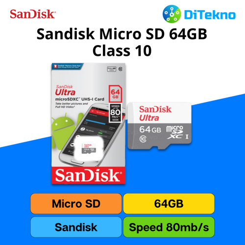 Kartu memori Sandisk Class 10 64GB dengan kecepatan hingga 80MB/s adalah solusi penyimpanan yang dirancang untuk memberikan kecepatan dan kapasitas yang ideal bagi kebutuhan fotografi dan perekaman video.